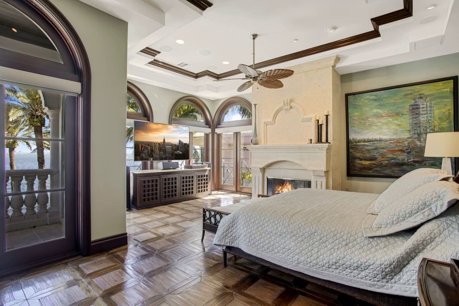 Located behind the gates of the exclusive Tahiti Beach, this stunning Bayfront Mediterranean estate features unparalleled bay views overlooking Downtown, Key Biscayne and Biscayne Bay. One of 27 homes in this private community, this impressive estate offers 150ft of water frontage, suitable for your 90 yacht. Striking entrance with 23 ceilings & soaring windows looking directly on to the pool & bay. Main level includes an office/library, elevator, media room w/ wet bar, guest bedroom with ensuite bath. Kitchen cabinetry by Clive Christian, Wolf and Sub-Zero appliances, home gym & separate Primary Suite w/ a private terrace overlooking the bay. Resort-style pool with summer kitchen & full cabana bath. A rare opportunity to own directly on the bay with the most breathtaking views in Miami.