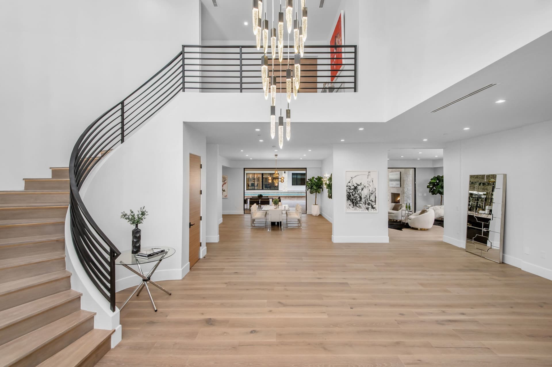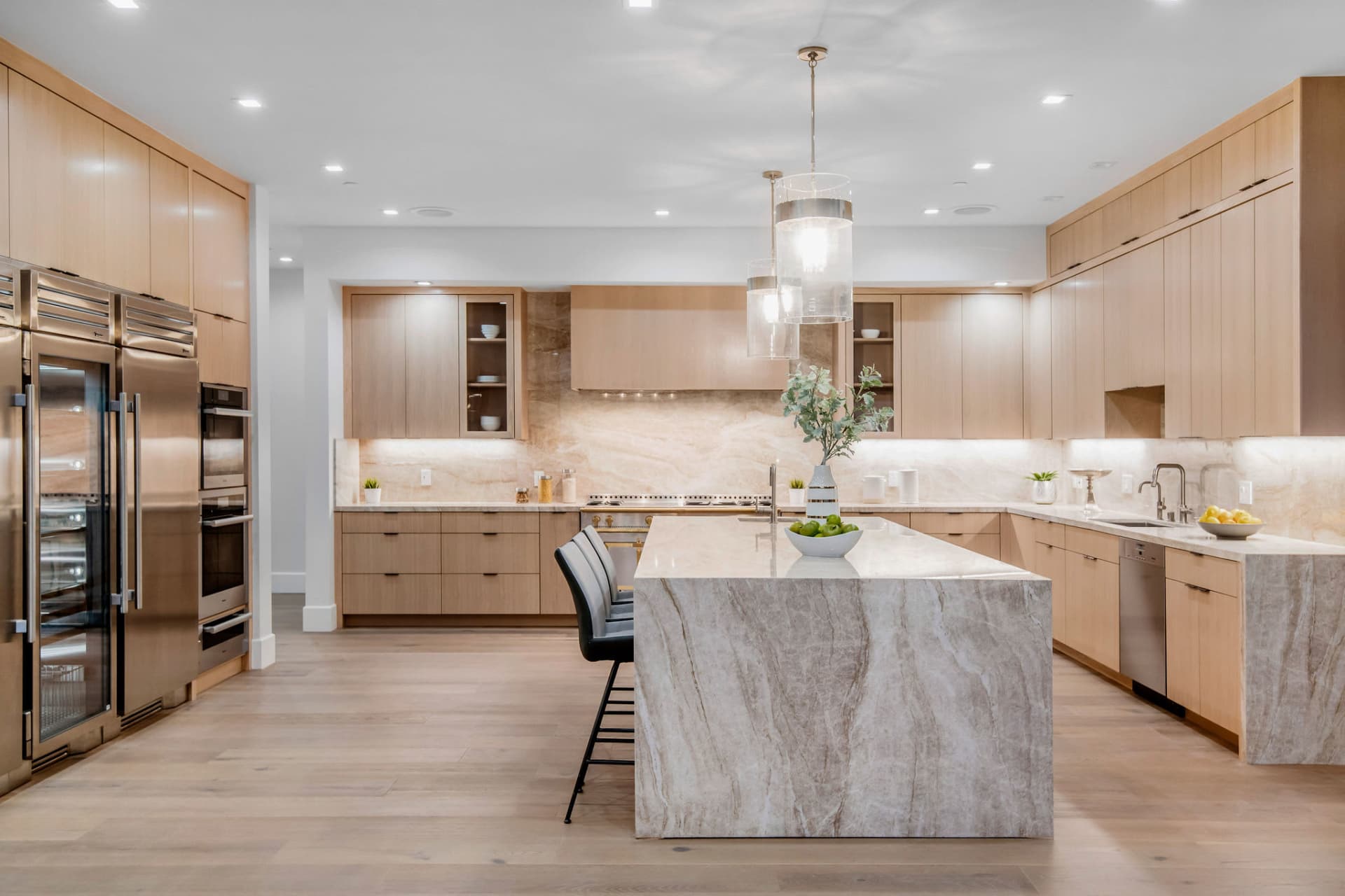The main house has an expansive 4 car garage and offers 5 bedrooms, 7 bathrooms, with volume ceilings, and a light-filled interior that is ideal for large gatherings and family living. The spacious gourmet kitchen boasts granite countertops, top-of-the-line appliances including La Cornue Range, and a TRUE commercial refrigerator/freezer. A generous center island with bar seating, walk-in pantry, and beverage bar with refrigerator and icemaker. There is plenty of open space to share while cooking up delicious dishes with friends and family!