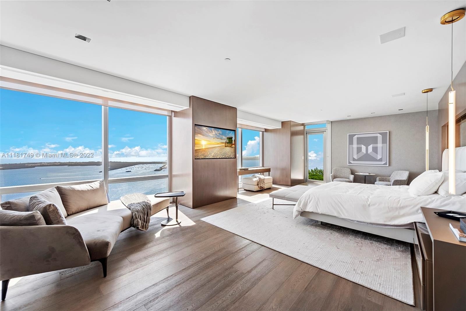 On the 52nd floor of the Four Seasons, the definition of luxury modern living soars above the Miami skyline. This residence features 5 bedrooms, 6.5 baths plus a studio guest room, and floor-to-ceiling glass windows that overlook the Biscayne Bay. An expansive open kitchen and dining leads into a luxurious family room plus an additional casual family media room with a functional bar. The designer kitchen is equipped with stainless steel appliances and sleek-finished countertops. The Four Seasons concierge and hotel services are 24/7 and 5-star amenities such as a private pool, hotel pool/bar access, and an Equinox gym membership are available for residents.
