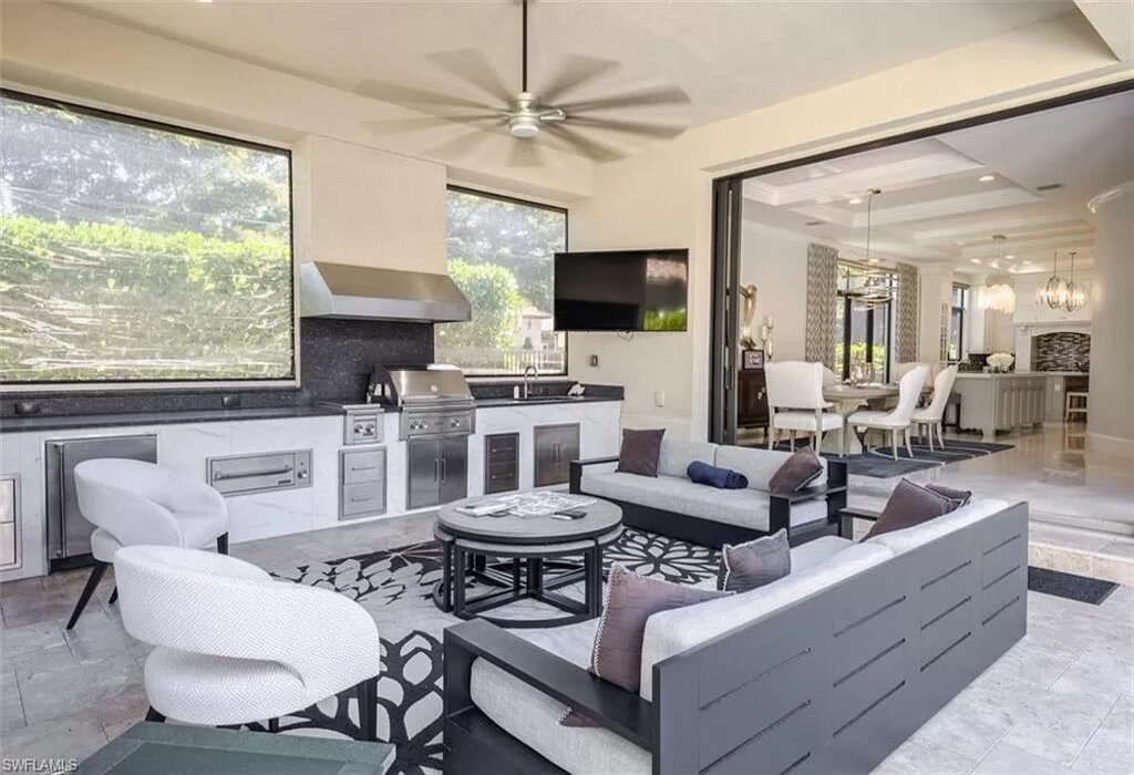 IMMEDIATE GOLF MEMBERSHIP AVAILABLE! This gorgeous home in Traditions at Grey Oaks features four bedrooms plus a den and loft, 4 1/2 bathrooms, and a 2 1/2 car garage for your golf cart! This immaculate residence showcases high-end finishes and quality throughout with soaring 22’ ceilings, a chef’s kitchen with dual islands, and an expansive outdoor living area with a resort-style pool and spa. The outdoor living area consists of a gas fireplace, full outdoor kitchen, and large private outdoor living area for entertaining. No detail was overlooked with extensive upgrades including opening up the great room and dining rooms, impact doors and windows, gorgeous wood flooring, and more. With the option of becoming a member of Grey Oaks Country Club, you will have 54 holes of golf, a newly renovated wellness center, lagoon-style pool, tennis, pickleball, bocce, restaurants, spa, and extensive amenities at your fingertips. All just minutes from downtown Naples world-class shopping fine dining and white sand beaches.