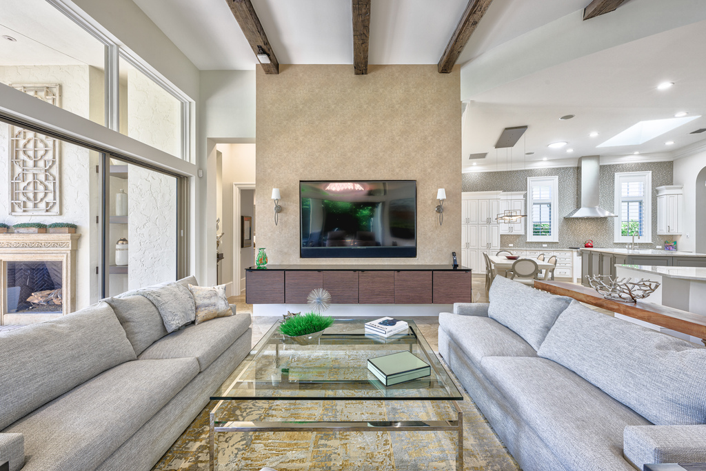 Updated technology with a Lutron WIFI lighting system, a new 7.1 sound system, and powered shades for optimal TV viewing.