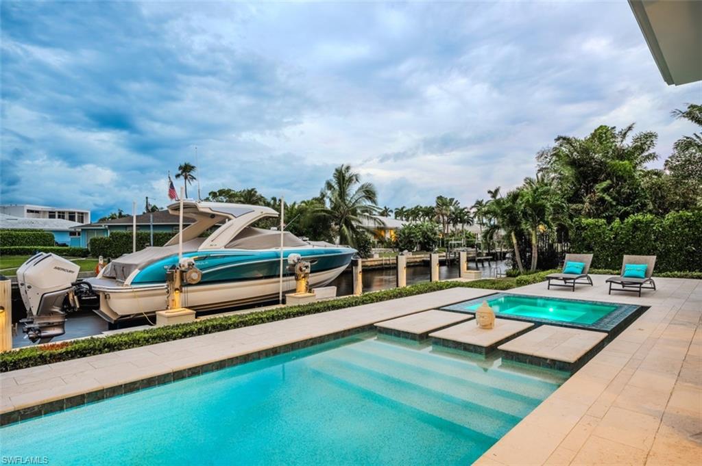Nestled in a coveted Royal Harbor cul-de-sac with direct access to the Gulf of Mexico, this stunning custom home offers an unparalleled waterfront lifestyle with an impressive 188 feet of pristine water frontage. Spanning approximately 5,537 square feet, the residence showcases open interiors adorned with exceptional artisan finishes and luxurious details that create a warm and inviting atmosphere. Featuring four well-appointed guest suites and a separate study, this home is perfect for both relaxation and entertaining. The gourmet kitchen is a chef’s dream, combining style and functionality with a large center island, professional-grade appliances, a walk-in pantry, and breathtaking water views. It seamlessly flows into the covered lanai, ideal for al fresco dining and gatherings. The great room is a showstopper, with floor-to-ceiling doors that open to spectacular outdoor spaces, including a sparkling pool, lush grassy area, and a boat dock equipped with a newer 16,000 lb boat lift. Additional highlights include an approximately two-year-old seawall, a whole house generator, Car Lift (giving it a 4 Car Option) and meticulous attention to detail throughout. This architectural masterpiece is truly a gem within an exclusive boating community, offering both luxury and convenience. Located just minutes from the vibrant dining and shopping of downtown 5th Avenue South and Third Street South, as well as the stunning white sand beaches, this home is the epitome of coastal living at its finest.
