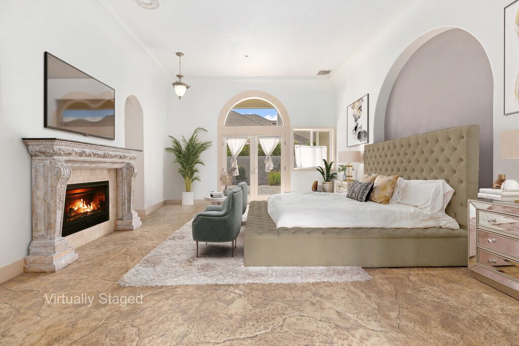 Timeless architecture sets this luxurious Seven Hills property apart. Warm, natural hues evoke an old-world charm and richness. The five-bedroom, five-bathroom 5,337-square-foot two-story estate demonstrates incredible indoor/outdoor living. Stained concrete floors, arched doorways, an elegant staircase, stone fireplaces, and wrought iron chandeliers enhance the ambiance. Double islands with marble countertops, custom cabinetry, and professional-grade appliances adorn the incredible Gourmet kitchen. The exclusive primary suite is an elegant haven complete with access to the exterior courtyard, distinctive fireplace, and seating area. Its lavish bath features a soaking tub encased in natural stone, a walk-in shower, dual vanities, and a separate make-up area. As beautiful as the Mediterranean countryside, the exterior features ivy-lined walls, lush mature landscaping, stone fountains, a private pool with a stone cabana, and an upper-level deck with views.
