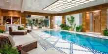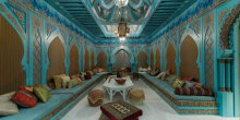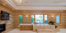 Le Palais features 48,000 sq. ft, 1.9 acres, seven bedrooms, 11 bathrooms, swan pond, lalique-style chandaliers ad doors, formal and informal dining rooms, massive pool, parking for ten vehicles, 5,000-bottle wine cellar, 200-person ballroom, 40-seat screening room, Turkish hammam and Moroccan room, according to Curbed. Is there anything this gorgeous estate doesn’t have?