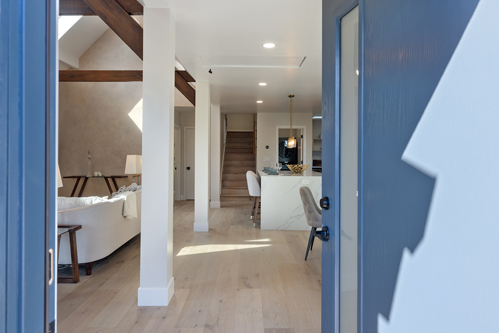 This Berkeley Hills Tudor has been transformed into a light-filled, modern retreat that seamlessly blends old-world charm with contemporary elegance. The top-to-bottom remodel has elevated the property to a true oasis, overlooking the treetops and Berkeley skyline. As you enter, the soaring skylit ceilings and hand-hewn beams create an inviting, old-world ambiance, while the hand-painted palette of soft naturals unifies the open-space design. The living room features a sleek, modern fireplace, while the 8-foot chef’s kitchen island with a stone waterfall counter and the expansive dining space with floor-to-ceiling windows and doors that open to a 560-square-foot wrap-around deck create a harmonious flow throughout the main living areas. The main floor boasts a bed-and-bath suite with a spa-like bathroom, complete with a seamless, walk-in steam room shower and heated floors. Upstairs, three more bedrooms are uniquely laid out for maximum privacy, including an en-suite primary suite with a walk-in closet and its own indoor-outdoor connection to a private rear yard. Downstairs, a separate-entry integrated ADU offers additional living space, with a living room, bedroom, kitchenette, and a luxury bath, providing flexibility and independence for guests or family members. This Berkeley Hills Tudor has been transformed into a true masterpiece, blending the best of old-world charm and modern European flair, creating a light-filled, private retreat that is sure to impress.