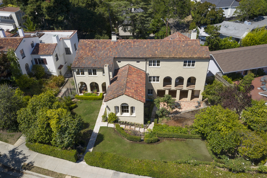 Discreetly elegant and private 5 bedroom, 4.5 bath Mediterranean located at 99 Lafayette Avenue in Piedmont boasts lots of natural light in each room, hardwood floors, and garden views. Large living room with dramatic vaulted ceilings, windows on three sides, and a wood-burning fireplace. Expansive media room with wood burning fireplace and one wall with French doors opening to a covered porch with grill and eating area; breakfast room French doors open to the same porch with stairs to lower patio and garden room. Sunny kitchen with eating counter and new appliances. Large dining room with one wall of French doors and pocket door to the butler’s pantry. Upstairs, the staircase divides the primary bedroom from the other three bedrooms. The primary bedroom has two dressing rooms with built-ins, a shoe closet, a dress closet, a sunroom/office, a full bathroom, and a walk-in linen closet off the foyer. The other three large bedrooms share two full baths and are light-filled, two of which have walk-in closets with built-ins. The above-grade lower level has a two-bedroom suite with a full bath, ample closet space, garden views, and a private entrance. The large garden room has a wet bar, mini-fridge, and French doors opening to the front patio for large parties and to the rear yard porch. Two-car interior garage, laundry room, and ample storage. Home to top-rated schools, K-12.