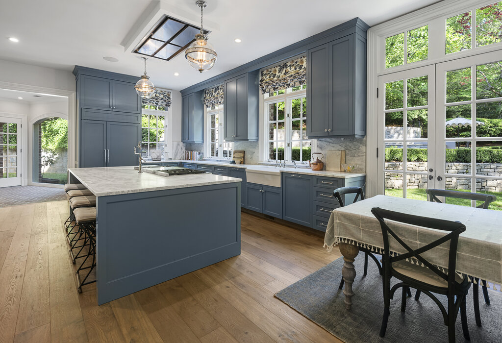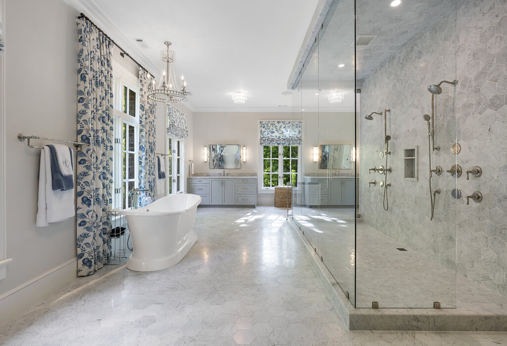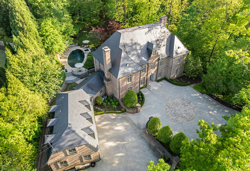 Located in Buckhead’s Tuxedo Park, this private 1.76-acre residence is tucked away at the top of a long, winding driveway and is surrounded by lush trees and landscaping. The updated residence is bright, open, and impeccably designed. From the custom wrought iron handrails to the array of designer wallpapers, to the stunning marble bath in the primary suite, the design details are endless. An open-air foyer leads into the dining room with french doors opening to the patio, pebble tec heated pool and spa, and surrounding grounds. The dining room also accesses the bright and spacious kitchen with marble countertops, custom cabinetry, and open views into the family room with a stunning stone fireplace. Upstairs are 4 bedroom suites, including the primary suite with a marble bath and rain shower, two dressing rooms, and a coffee bar. On the terrace level, the entertainment possibilities are endless. Enjoy a wine tasting in the 5,000 bottle wine room, relax in the bar and lounge with marble top bar, exposed brick walls, and wood beamed ceilings, or unwind while watching your favorite movie in the screening room that seats 12-14. There is also a full gym, bath, and guest suite on the terrace level. The residence also has a complete guest apartment with a separate entrance located above the 3-car garage, as well as a cabana bath that serves the pool.