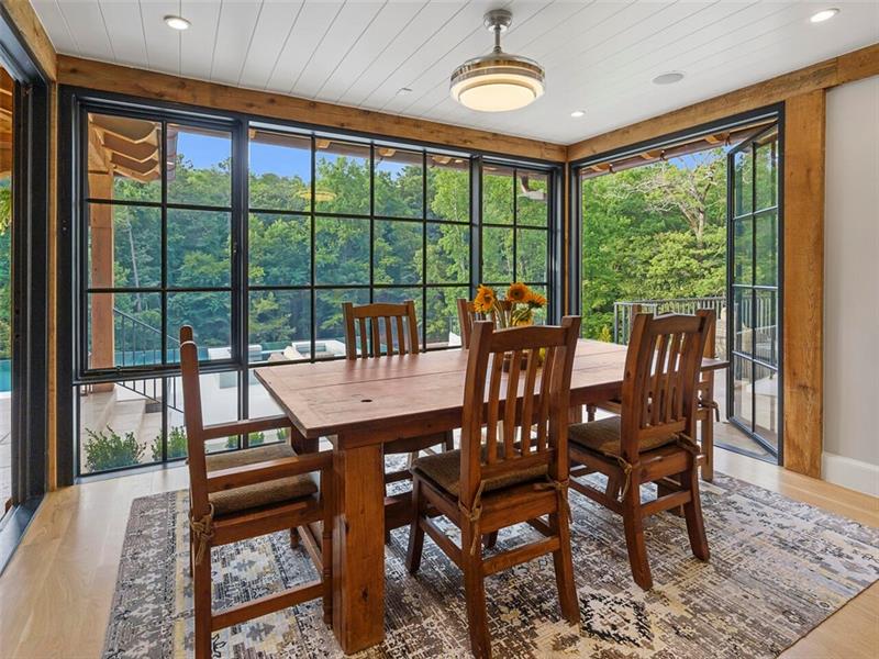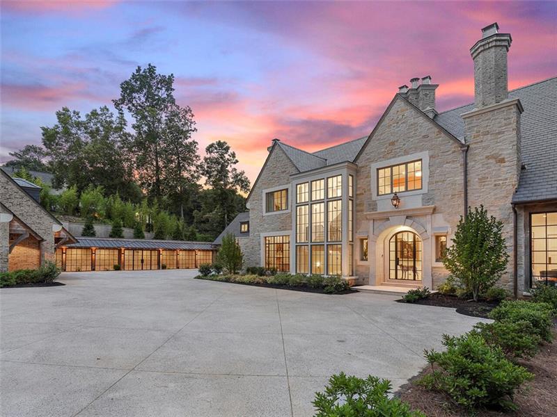 Fully automated smart home on over 6.5 acres! A private, gated entrance, fully landscaped, opens to a winding aggregate driveway leading down to the residence with a motor court and a 6 car garage. The property goes well beyond the lake to the right and behind the lake. The topology will keep the privacy year-round. Transitional architecture and design by Greg Busch feature iron windows and doors that are low tempered glass with stunning views of the property. Located in the most desirable area of Sandy Springs/North Buckhead in 30327. Close to all of the best schools. An open floor plan features indoor and outdoor entertaining spaces that flow from one to the other and over 11′ foot ceilings. Iron doors open from the living room, kitchen, and dining room out to the infinity pool and spa overlooking a spring-fed lake with a dock and trails. Inside, the catering kitchen with butler’s pantry opens to the living and dining spaces. Outside, entertain in the pool house with fireplace, kitchen, and retractable doors surrounding the pool. The terrace level is an entertainer’s dream with a wine room, bowling alley, kitchen and bar, indoor sports court, and home theater. Exercise in the gym and indoor lap pool and sauna. Walk into the owner’s suite wing with a cozy sitting room and fireplace, vaulted ceiling, motorized blinds, and dual dressing rooms. The residence also has a separate au pair or guest suite, elevator, and whole house generator.