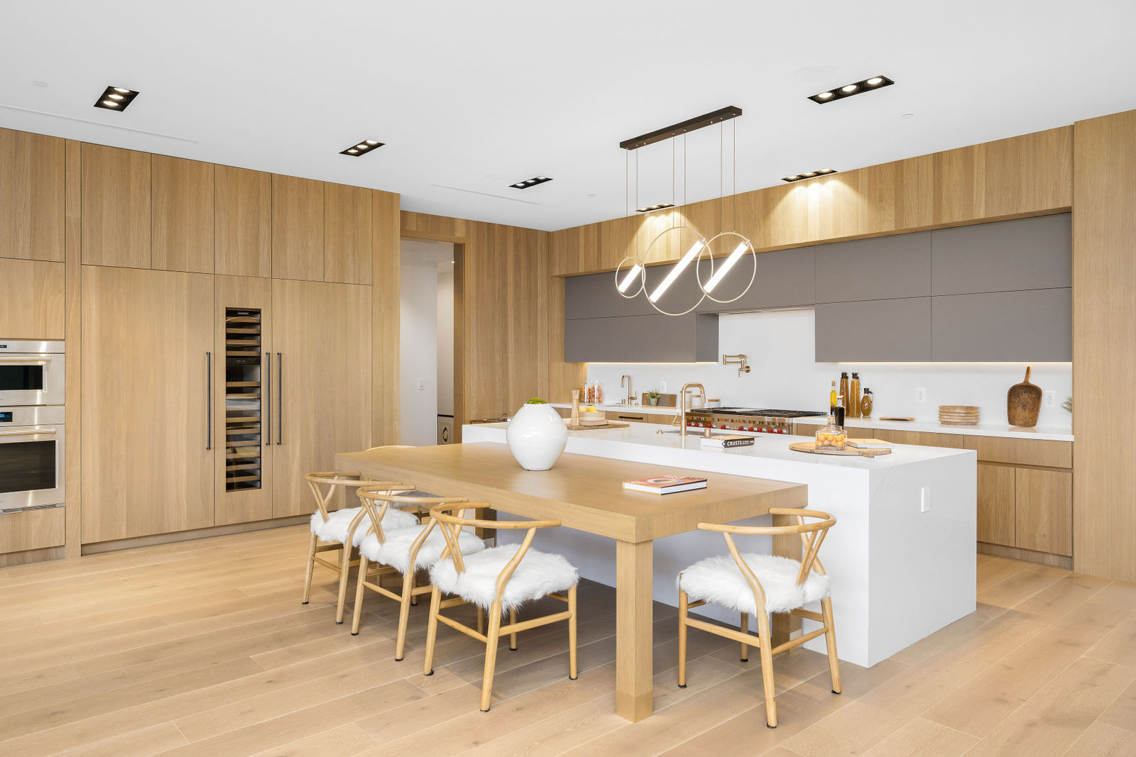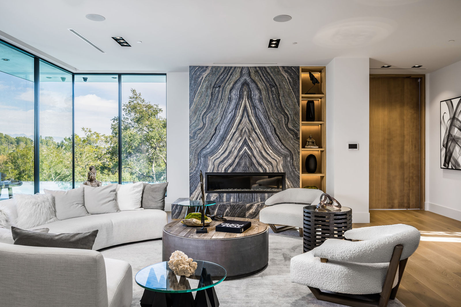 Welcome to your newly constructed contemporary modern masterpiece located in the coveted Royal Oaks of Encino. Set behind private gates and an extensive driveway sits this grand estate boasting 13,000 sqft of refined luxury. The awe-inspiring main level welcomes you to quintessential California living featuring exceptional city views radiating from massive glass pocket doors the moment you enter. Incredibly open floor plan generates a smooth flow from the sweeping living room, sumptuous dining room, striking chic bar, oversized chef’s kitchen with center island and breakfast table, butler’s pantry, bedroom with ensuite bathroom, glass-enclosed office, and substantial family room that opens to the ultimate entertainer’s dream backyard. Upstairs beholds 5 exquisitely designed ensuite bedrooms, including a master retreat featuring a stunning fireplace, expansive walk-in closet with accessories room, luxurious spa-like bathroom, and glass windows leading out to the extensive balcony with a cozy fire pit and plenty of lounging space. Downstairs presents amenities galore, featuring a sauna, home theater, gym, wet bar, ensuite bedroom, and a massive 2,000 sqft garage perfect for 6-8 cars. The extraordinary backyard offers a Basketball court, infinity pool & spa, sunken fire pit, outdoor BBQ area w/ room for seating, immense grass, covered lounge area with outdoor bathroom, all surrounded by lush greenery providing peace and tranquility. This property also has a rooftop terrace complete with a fire pit, outdoor BBQ, and captures breathtaking views of the city. Architecturally designed with meticulous perfection, this trophy estate is unlike any other.