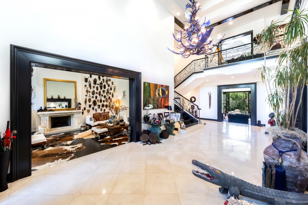 World-renowned iconic fashion designer’s estate, set behind guarded gates in prestigious Bel Air Crest in the Santa Monica mountains overlooking magnificent vistas. This 7,603 sq ft home features 5 Bedrooms and 5.5 Baths, is bright and airy on the inside, with a grand motor court and a front entrance that gives way to a stunning high-ceilinged entryway. The opulent Mediterranean-style villa infused with Balinese design and decor has elevated dramatic entryways leading into a formal living room, dining room, cozier interior family room and open chef’s kitchen featuring a large breakfast nook. The master suite, located on the second floor, features double baths/closets, a fireplace, and a romantic loggia. Other amenities include separate maid’s quarters, 3-car garage, and a backyard resplendent with spaces for entertaining, garden area for dining al fresco, lush landscaping, saltwater pool and spa. The home is located in a guard gated community, offering the utmost privacy. Additional community amenities include a kid’s park, dog park, tennis and basketball courts, clubhouse, putting green, banquet facility and gym.