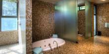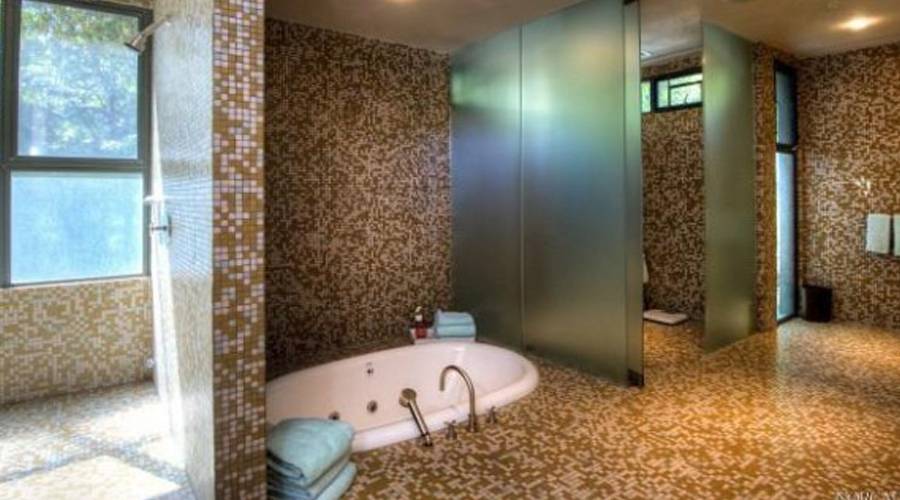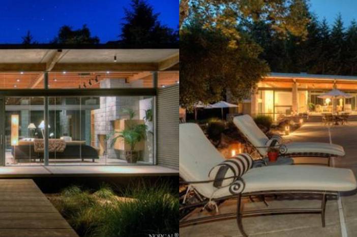The Napa Valley estate boasts 22 acres of pristine property, 3,500 square feet of living space, modern architectural features, two bedrooms, two-and-a-half baths, exposed wood beams, gym, guest house and a stunning 75-foot lap pool for staying fit!