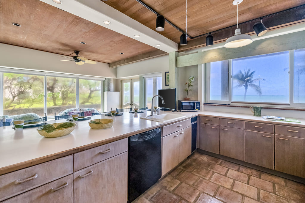 Welcome Aboard !! Cruise ship-inspired architecture on spectacular 17,207 square feet of beachfront property on famed Kailua Beach. The home has a nice, big backyard which is set back from the beach, affording a lot of privacy. Designed by famous architect Norm Lacayo ( Honolulu Park Place and Harbor Court )