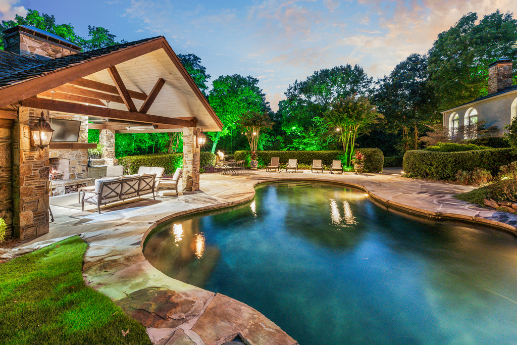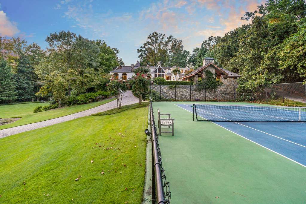 This residence has all of the relaxing elements of a retreat and is situated on 2.4+ private acres and lives like a dream. Enjoy a relaxed lifestyle environment complete with newly finished tennis courts, pool, spa, and pool house with kitchen and bath. A golfer’s paradise with putting greens, 2 tees, sandtrap and more! Understated and exceptional quality, this elegant Elan smart home has large, open rooms that overlook the property. The new gourmet kitchen features honed marble countertops, custom cabinetry, Sub Zero and a La Cornue Grand Palais range. The oversized living room overlooks the entire property and has a stone fireplace, full bar and wine room. The screened patio overlooks the pool and is perfect for evenings outdoors. The private owner’s suite is on the main level with private deck overlooking the practice greens and property. Four additional bedroom suites upstairs with new custom cabinetry and closets. This completely private retreat is excellent for large events and has plenty of parking on the property. The terrace level guest apartment has a kitchen, living room, bedroom and bath and opens to the pool. The residence has a generator, all new systems and security. An incredible opportunity situated in a highly desirable estate neighborhood at the end of a cul-de-sac and perfectly located, close to the best schools, restaurants and shopping in Atlanta.
