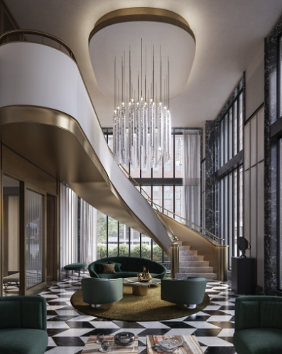 Stunning lighting can add drama to any space, not just Rockefeller Center. The illumination lights provide and their architecture can be pure art. Many luxury residential buildings are using dramatic light fixtures as sculptural centerpieces and/or to highlight aspects of their buildings.