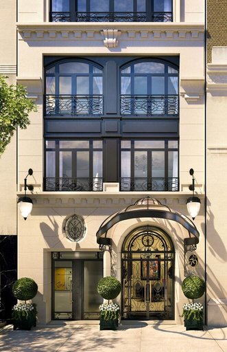 Located in the heart of the Upper East Side, this new condominium has stunning lanterns on the front facade of the ground floor known as “T-shaped lanterns“ in the late 19th-century taste. The decorative esthetic choice for this project is based on the French late 19th century, particularly Parisian. It brings together complex decorative components marrying a plethora of materials, it is the industrial era with iron in the construction, which produced, following the Eiffel Tower, buildings in Paris known as “eclectic” which housed among others, famous newspapers from the time period such as L’Aurore. These lanterns are made with iron elements, put together, then patinated in harmony with the ironwork of the façade. For the glass globes, a wooden mold will be made to be able to pour and to shape the molten glass in a way to make its definitive form.