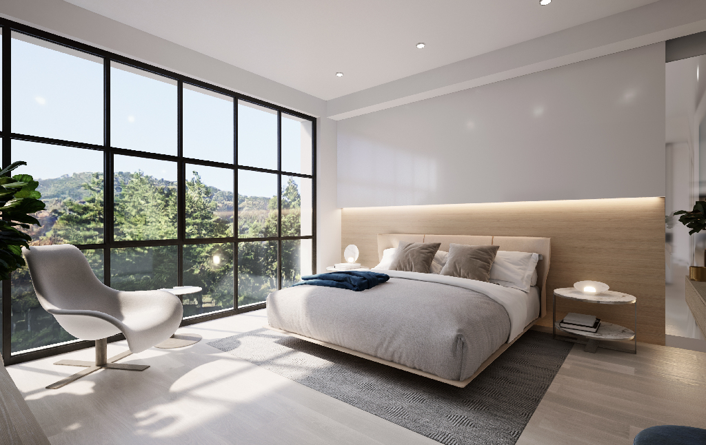 With their clean industrial vibe, the New Modern residences showcase light, bright interiors with 12’ expanses of floor-to-ceiling glass. Refined details include steel and glass room dividers.