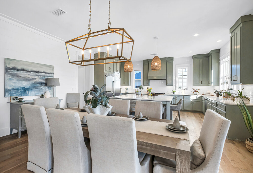 With a short stroll to the 30a beaches along Santa Rosa Beach, this coastal retreat boasts the finest in Florida living. Gulf Views from various rooms and the multiple decks to enjoy the coastal breezes invite you to relish in the amenities of this 3-story home that stretches over 3,400 square feet. This coastal home offers an abundance of natural light, a contemporary design, and an open floor plan. The kitchen is a chef’s dream and can accommodate a private chef or large gatherings around the dining table. Professional-grade stainless steel appliances, a walk-in pantry, plenty of counter space, and a large island area perfect for casual seating are just a few of the features you’ll appreciate before seating guests in the adjoining dining area.