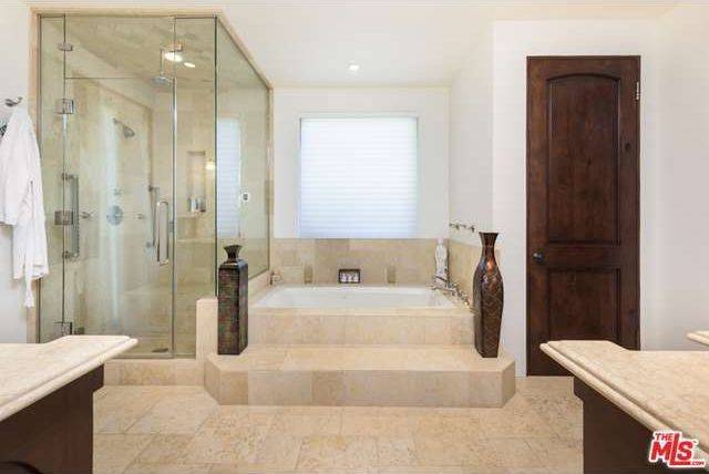 There are five bathrooms throughout the 4,202-square-foot, three-level pad, four of which are located within the bedrooms that also feature spacious walk-in closets.