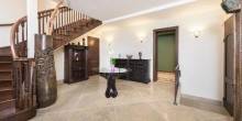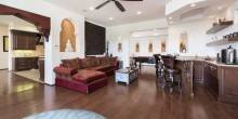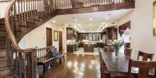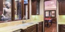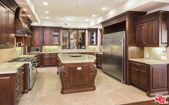 The gourmet kitchen is also spacious and boasts a large prep island, custom-made wood cabinetry, kitchen appliances made from stainless steel, a pantry, and a wine cellar that can hold, at minimum, 600 bottles of wine.
