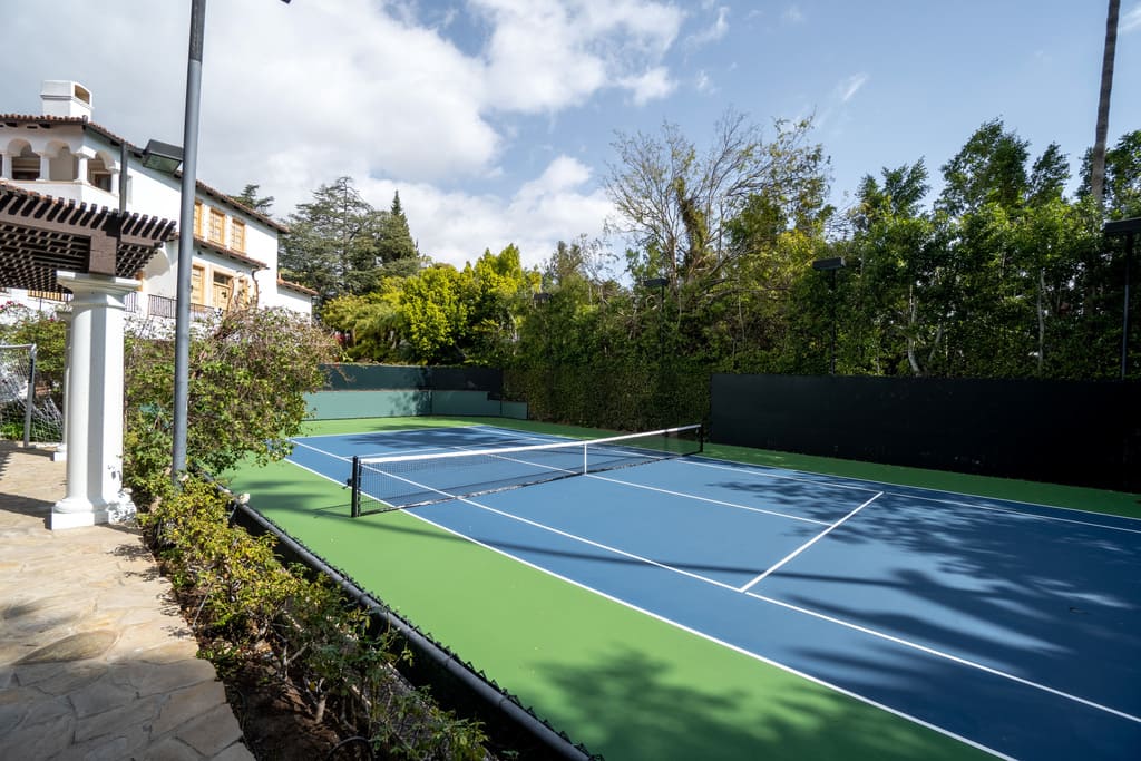 Located in the desired heart of Beverly Hills, this important Spanish Colonial estate is set upon 1.5 acres totally hidden from the street with virtual privacy. Sumptuously offering grand living interiors and spacious outdoor grounds including champion-sized Tennis Court, Gym, Locker Room, Swimming Pool w/Waterfall, 2 story Guest House and Pond with hewn rock bridge. Respected architect, Robert L. Earl has designed custom estates throughout the United States, Mexico, Japan, and Saudi Arabia. His neoclassical and European styles attract world-recognized clients. The 15,404 sq foot Main House features a soaring Entry Foyer that showcases a dramatic curving staircase leading upstairs. There are 3 staircases serving the residence. Proceed into the immense Living Room that overlooks the private backyard and million-dollar Pool through a series of archways. The Primary Suite presents perhaps the largest expanse of closets & dressing rooms in Beverly Hills. Separate baths for both spouses plus private relaxing room, and more — must be seen to be believed. The Main House provides 8 bedrooms and 11 baths, Guest House provides 2 bedrooms and 2 baths. From the street entrance, imposing decorative gates lead up a long driveway that ends at the circular Motor Court for guests and continues privately to the array of 4 Garages for the exclusive use of the owners. A statuesque setting that befits one of the great houses in Beverly Hills. A rare luxury in a city of ultimates.