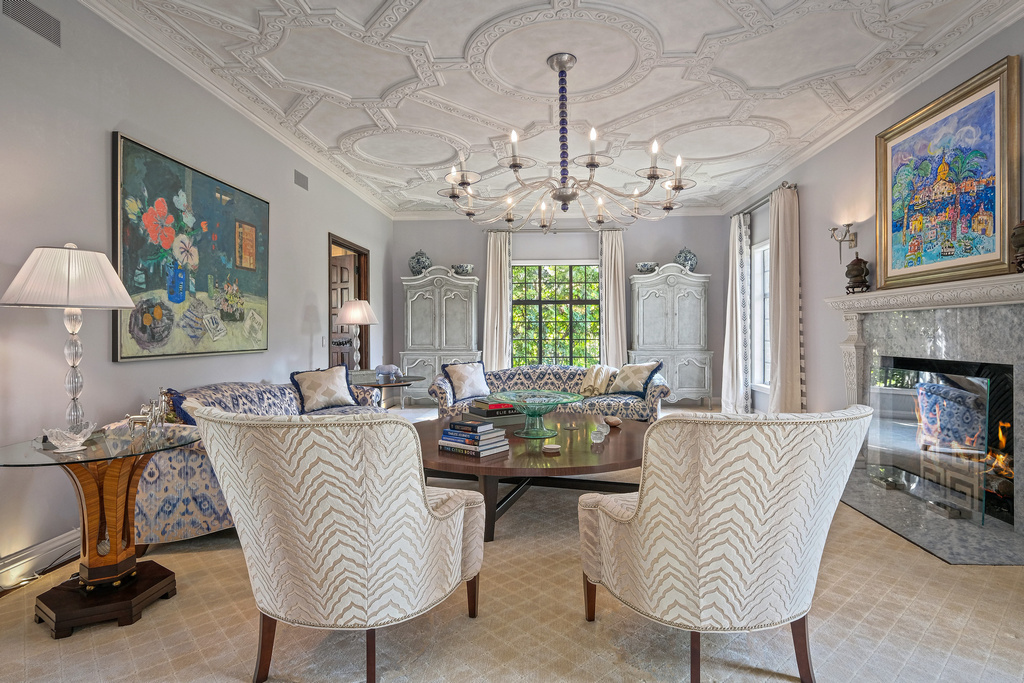 The finest lifestyle resides here on Hancock Parks most coveted address street in the form of a grand Traditional Tudor that has beautifully morphed into Contemporary expression. Presiding over a private domain offering gated Driveway w/Porte Cochere and rear Motorcourt, Guest House, tiled Pool, fenced lawn & gardens, Canopy Refuge & expansive entertaining Terrace -the residence offers ultimate living in discreet secured privacy. Double height Owners Suite offers sitting Lounge and perhaps the Citys most beautiful double bath Suite w separate wardrobe rooms. Public spaces include the handsome Library/Office, Bar Lounge, Game Room, Wine Cellar clubroom & huge projection Cinema that echoes the Arclight experience. The drama of the upper hall suspended chandelier from the sky proves unforgettable and must be seen. 6 bedrooms suites, 2 Laundry service rms, outdoor Kitchen w/Pizza Oven complete a perfect scene for enviable comfort.