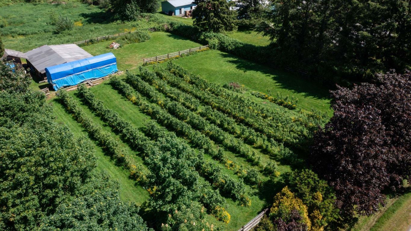 This storybook, mountain view, and five-acre orchard with its handcrafted stone masonry exterior and finishes create a truly unique and sought-after look and construction quality. In full production, the 1200 apple, pear, and cherry trees offer unique varietals such as Cox Orange Pippin, Honey Crisp, and Bramley, 3 cherry varietals including Montmorenci & more. The open-concept farmhouse has 17\’ vaulted ceilings, custom mahogany doors, and windows, a 10\’ high entry door, polished concrete floors, industrial gas stove, and a dining hall fireplace built in river rock. The additional finishes needed lend this property to either a stately fruit farm and residence, or both a production, tasing, event/banquet, or showroom for a winery or cidery considering an ideal location in the Lower Mainland.