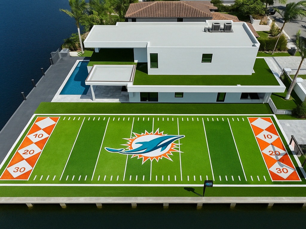 The Outdoor Amenities: Private Football Field with Miami Dolphins Branding