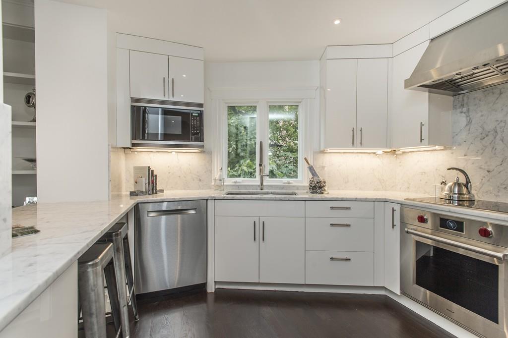 There are dark hardwood floors throughout, storage, and rental garage parking available.
