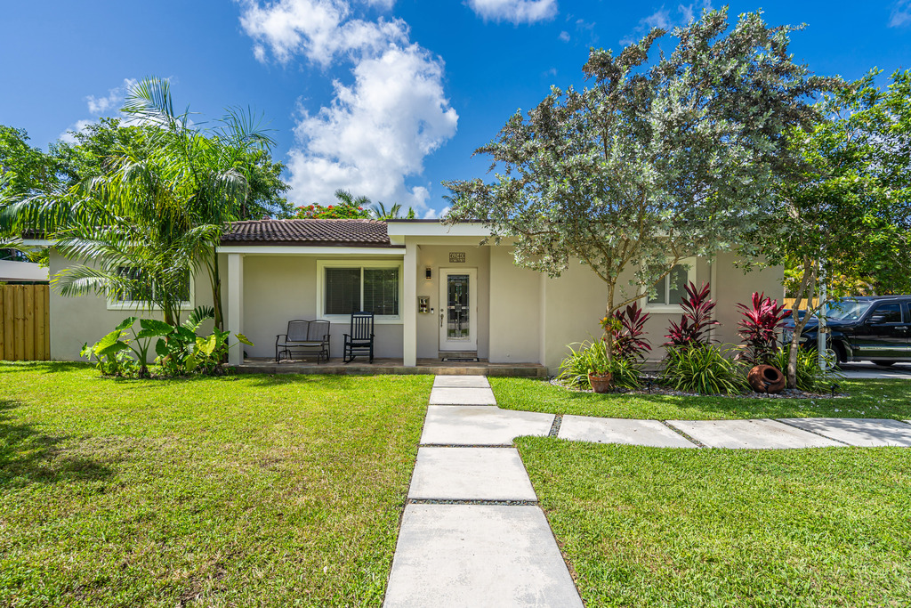 A chef’s kitchen offers a Sub-Zero refrigerator-freezer, Wolf cooktop, double oven, warming drawer, microwave oven, two Bosch dishwashers, trash compactor, walk-in pantry, walnut floor, granite counter tops and a pass-through window to the outdoor kitchen which includes a Dacor BBQ grill and Sub-Zero under counter refrigerator.