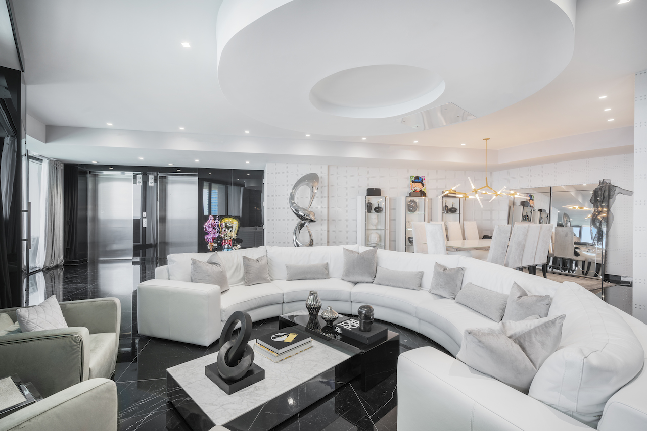 Extravagant 4 bedroom sky home at the most exclusive tower in Sunny Isles/Miami. This custom designer finished mansion in the sky spared no expense and has high-end finishes all throughout. Featuring a gorgeously finished 2 car garage in the unit with a private elevator and a heated saltwater pool on the balcony. Enjoy living in the only building you can drive into your apartment with your car. The residence includes Miele appliances, private elevator, private restaurant with in-room dining, building concierge, car concierge, full beach service, two pools, spa, car simulator, sports simulator, movie theatre, salon, and party room. Enjoy five-star resort like living in one of the most technologically advanced, private, and secure buildings in the world!