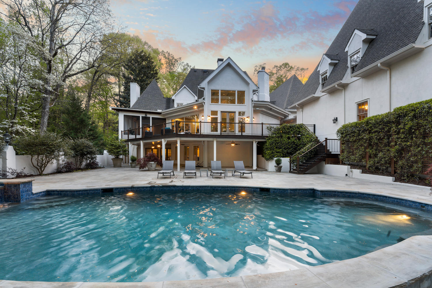 Superb Buckhead estate, plus guest apartment w kitchen. Incredible floor plan with flawless architectural details. Newer kitchen, catering kitchen w SubZero, Wolf and Miele coffee. Honed marble counters and custom cabinetry. Tumbled travertine & new ebony hardwood floors. Living room with soaring ceilings & doors that open to an ipe wood entertaining deck. Spectacular master with 2 new bathrooms, heated floors, 2 dressing rooms, den & private screened patio. Terrace level finished. Private pool/spa, bluestone patio. New epoxy floors in massive garage. Exceptional location and set far off the street. So private and quiet. Very close to the best private and public schools in Atlanta. Excellent area for hiking and biking and minutes to the best restaurants Buckhead has to offer. The interiors feel fresh and transitional. The upstairs secondary bedrooms each have their own den. Most of the upgrades have been completed in the last 3 years including the master and master bath, kitchen, pool, all the bathrooms, floors, mudroom, garage and guest apartment. This is a fantastic opportunity to have your own private retreat on 2.3 acres in Buckhead.