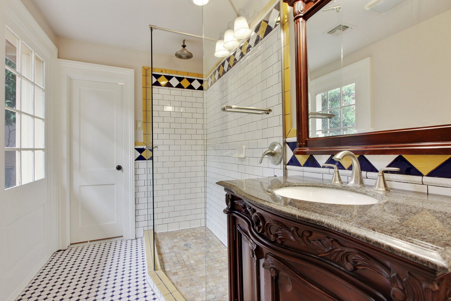 A private entry leads to a brick courtyard, which is shared by the cottage and rear house. The lower level has an open floor plan with Carrera marble floors throughout and French doors opening to a pool that is shared only with other condo owners, a guest bedroom, a full bath, and a newly renovated kitchen with carrera quartz countertops and GE cafe appliances. The master bedroom features an en suite bathroom, with Grohe Swarovski fixtures, and a generous walk-in closet opens up to a private balcony and large terrace overlooking the pool.