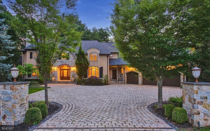 An exquisite custom-built colonial-style home with unparalleled curb appeal sits on nearly two acres of picturesque, park-like property, at 1235 Cooper Road in Scotch Plains, New Jersey. A spacious two-story foyer with a grand staircase welcomes you to this remarkable home with gleaming hardwood floors, incredible detailed millwork, recessed lighting, and soaring ceilings throughout.