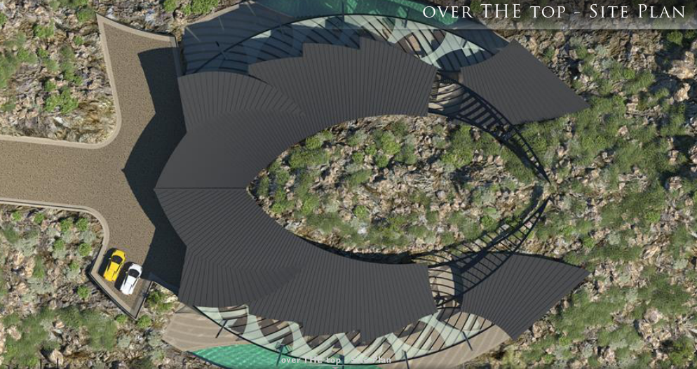 Get ready Paradise Valley, a sleek & futuristic mansion is coming your way! Proposed to be built at 5850 E Glen Drive atop 8.7 mountaintop acres, this contemporary style mansion looks like something out of a Sci-Fi movie.It was designed by architect Nick Tsontakis, AIA and will feature approximately 16,370 square feet of living space. A large motor court greets you at the ground level as you enter the front door. Inside there are a total of 6 bedrooms and 8 bathrooms spread over 2 floors. No interior renderings have been released yet, but I’m sure it will feature an open concept floor plan. Other features include floor-to-ceiling glass walls to take in the amazing views, an 8-car garage and a large infinity edge swimming pool.
