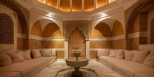 There is a main house, guesthouse and an apartment/garage wing. Inside, there are 9 bedrooms, 25 bathrooms, formal living and dining rooms, library, gourmet kitchen, ballroom that can hold 350 people, orchestra and full catering facilities, awesome indoor tennis court to US Open specifications, underground Moroccan-style baths, billiards room with wet bar, elaborate indoor swimming pool and more.