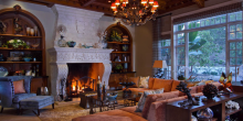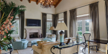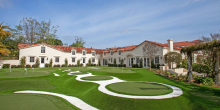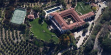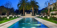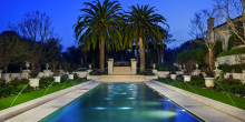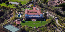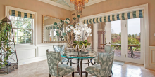 The main focal point of this home is the interior courtyard which features plants and a stone floor. The spectacular grounds feature an 80′ long rectangular shaped swimming pool with spa. Next to that is an entertaining pavilion with 2 BBQ stations and behind that is tennis court. Behind the garages are putting greens and near that is an attached guest house with 3 bedroom suites, gourmet kitchen, living room and a gym. This truly incredible estate is impeccable inside and out and can be yours for $19,995,000.
