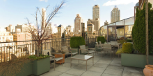 The duplex also features a large renovated kitchen, 11-foot ceilings, a living room with the building’s only working fireplace, a huge terrace and solarium and picturesque views of Central Park.