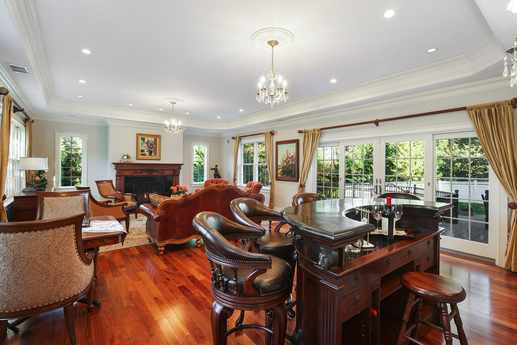 Expansive Colonial at the end of a quiet street with many improvements. Inside, you’ll appreciate the spacious rooms, custom woodwork, wood floors, high ceilings, and plenty of windows. The 1st floor includes a stunning 600 sq foot Great Room with a tray ceiling and custom gas fireplace and the gorgeous Woodmode Kitchen offers a chef’s delight.