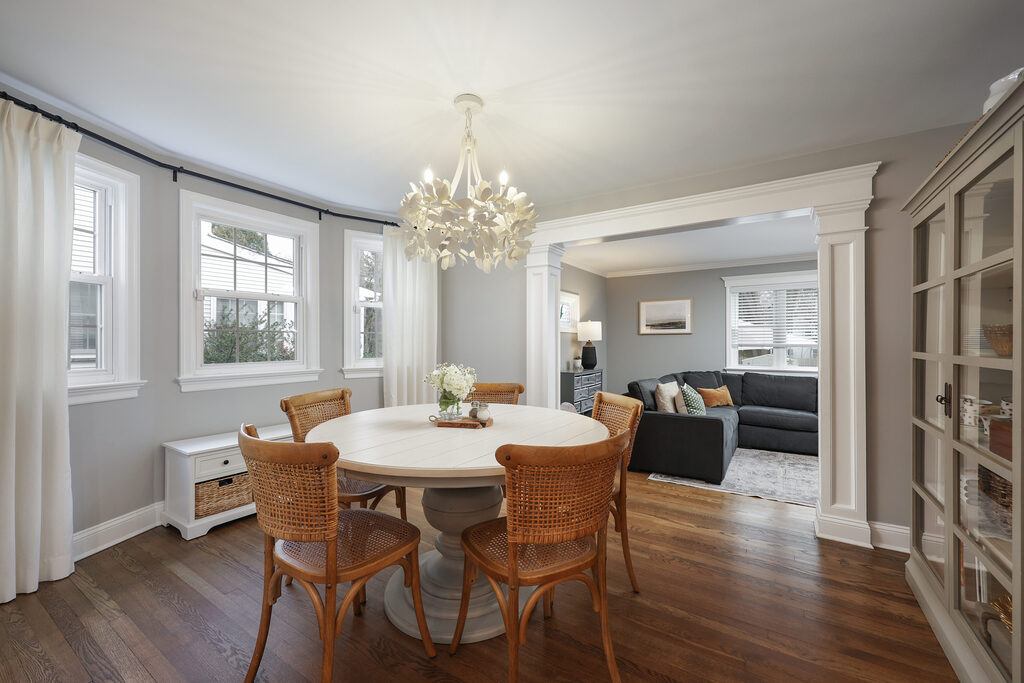 Ideally located in the highly sought-after Blue Ribbon Award-winning Washington School district, this gorgeous home awaits. Boasting numerous upgrades throughout, the first floor includes a beautiful living room with a gas fireplace open to the formal dining room, which accesses the step-down family room. The renovated eat-in kitchen offers Cambria quartz countertops, new SS appliances, white cabinetry, and subway tile backsplash. A breakfast room with access to the backyard and a gorgeous full bathroom finish the first level. The 2nd floor is home to the primary bedroom with built-in closets and access to the 3rd floor walk-up attic, two addl bedrooms, and a renovated full-hall bath. The finished lower level includes a rec room, laundry room with a new washer/dryer, and powder room. Outside, the fenced, deep grounds include a spacious new patio with knee wall, outdoor bistro lights, a gas line, and a 1-car attached garage (for storage only). Located in a charming neighborhood convenient to school, park, dining, and shopping, this home is move-in ready!