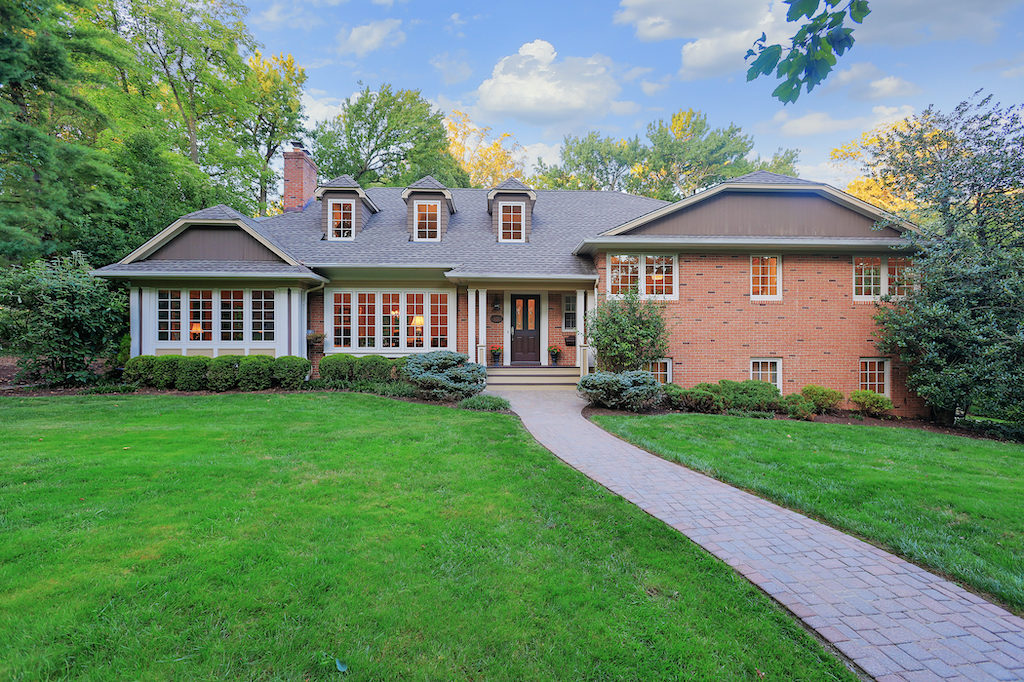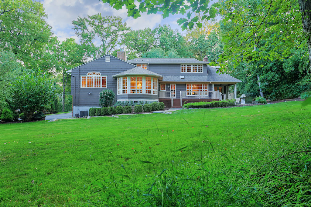 This five-bedroom, four full, one half bath home offers tiered levels of refined yet comfortable living space. Highlights include spacious rooms, arched entryways, high ceilings, hardwood floors, and beautiful views from every window. The cozy sunroom offers walls of windows with access to the covered mahogany porch. Third level master bedroom suite with sitting area, dual walk-in closets and a luxurious private bath with freestanding tub. Additional living space is found on the lower level boasting a kitchenette area, an office suite with outside access and a convenient full bath. Set on over an acre of manicured, lush grounds boasting views from both the inside and the outdoor covered porch, patio and deck. Convenient to schools, downtown, and NYC transportation, this home has it all!