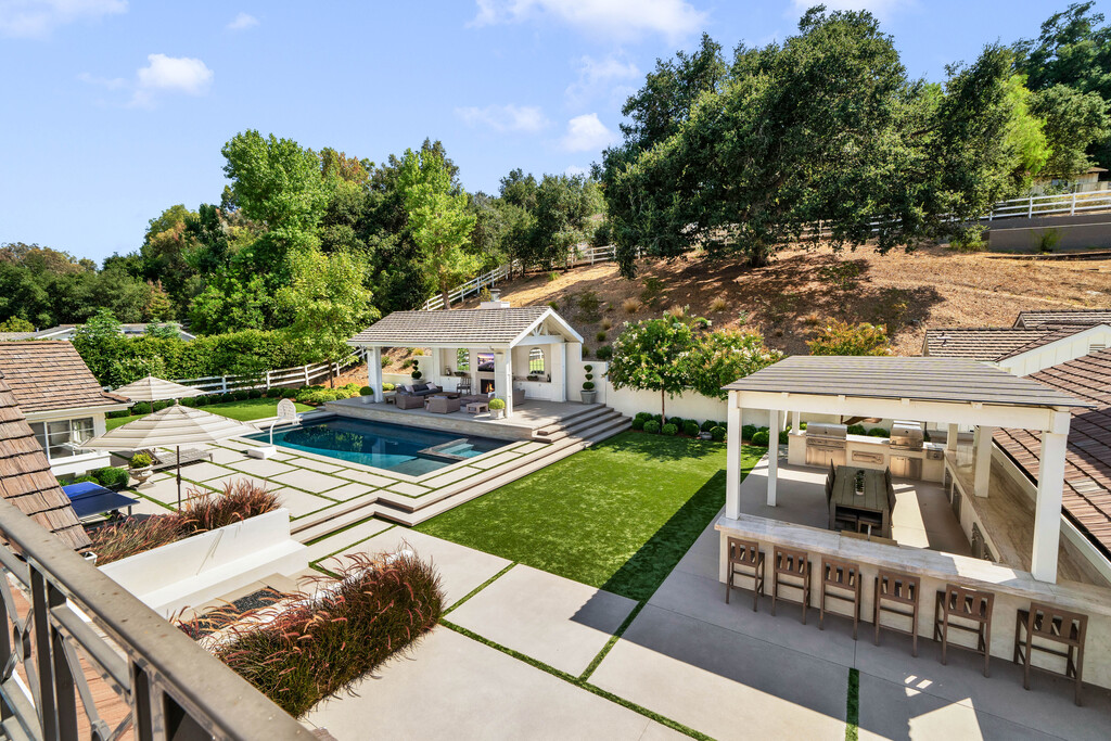 Guest suite with private bath and entrance, plus detached pool house offering office/living room with snack bar, gym, and sleeping quarters with 3/4 bath. Additional amenities include gleaming wood floors, wood beam ceiling detail, designer light fixtures, a private gated driveway, three car garage, gorgeous Oak Trees, and a whole-house LifeSource Water filtration system. Community offerings include a champion-sized pool, tennis courts, multiple riding arenas, miles of riding trails, and a weekly Farmer’s Market. Served by the award-winning Las Virgenes School District and located within minutes from Bristol Farms, Old Town Calabasas, and The Commons Shopping Center offering boutique shopping, movie theaters, and five-star restaurants.