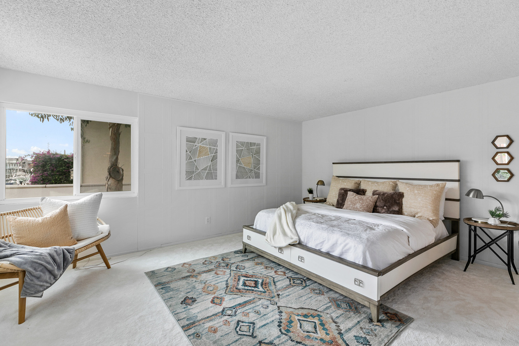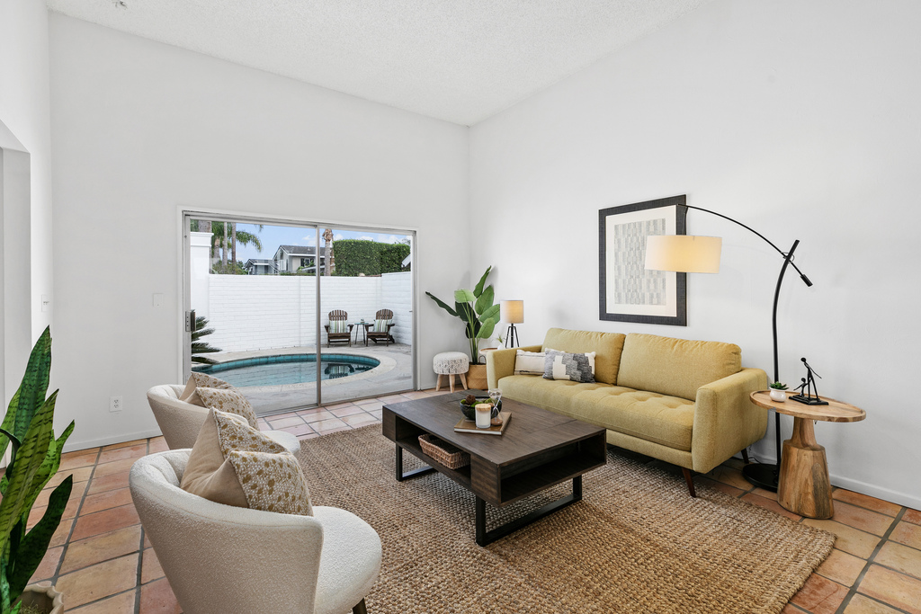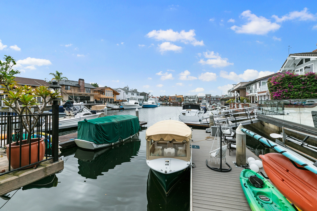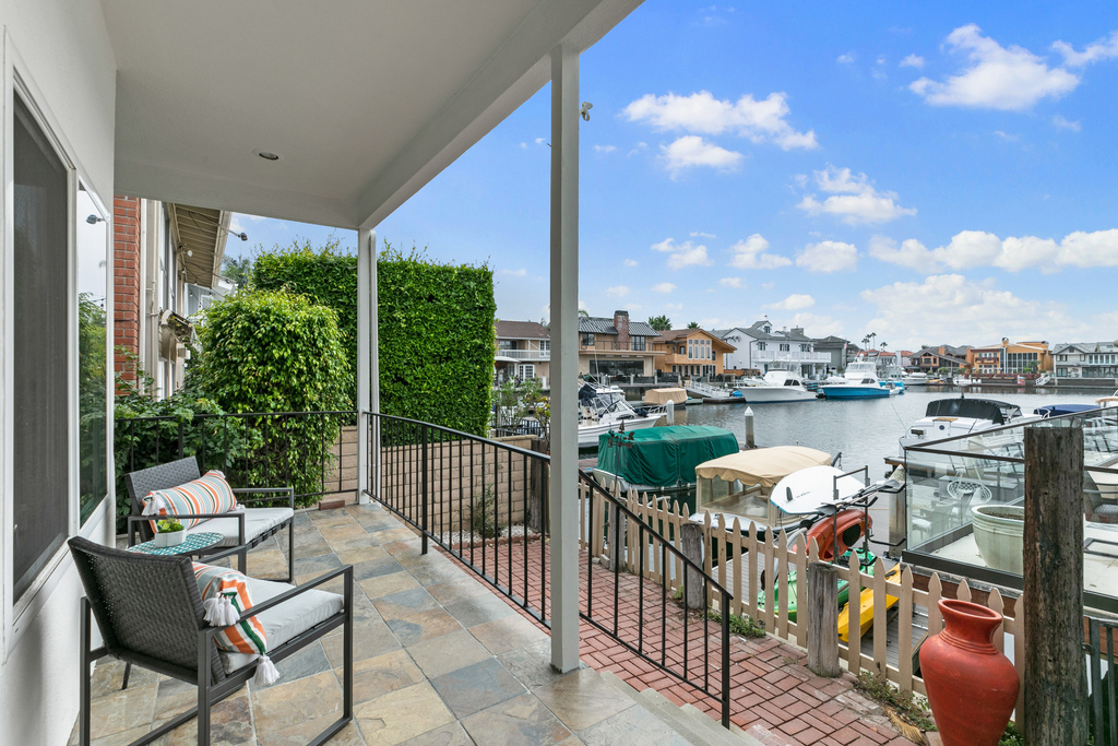 From the moment you enter this charming waterfront home, you leave the outside world and bask in the heavenly oasis that is Huntington Harbor. This bayfront opportunity offers over 1,800 square feet of quality space with an expansive view of the coveted Huntington Harbor. Complete with fresh plush white carpeting, fresh paint, and black hardware and lighting fixture updates throughout, the home is light and airy in nature with midcentury modern appeal. Through the double doors, you are immediately greeted with a nice outdoor courtyard space for relaxation and entertainment, centered around a heated cocktail pool. Enter the light-filled home to a comfortable family room, with ceramic tile flooring and a showstopper wood-burning fireplace, which blends seamlessly into the dining room and kitchen, all with breathtaking harbor views. The large primary bedroom showcases beautiful harbor views and is complete with a traditional-style bathroom with ceramic tiling. Additionally, there is a loft-style guest bedroom and den, ideal for any office or play space. There is no better place to enjoy the sunset than on the outdoor patio and balcony, with direct access to boating, paddle boarding, and kayaking in the harbor. Conveniently located near Harbor View Park with tennis courts, Davenport Mothers Beach, Harbor Mall, and award-winning Harbor View Elementary, Marina View Middle School, and Marina High School.