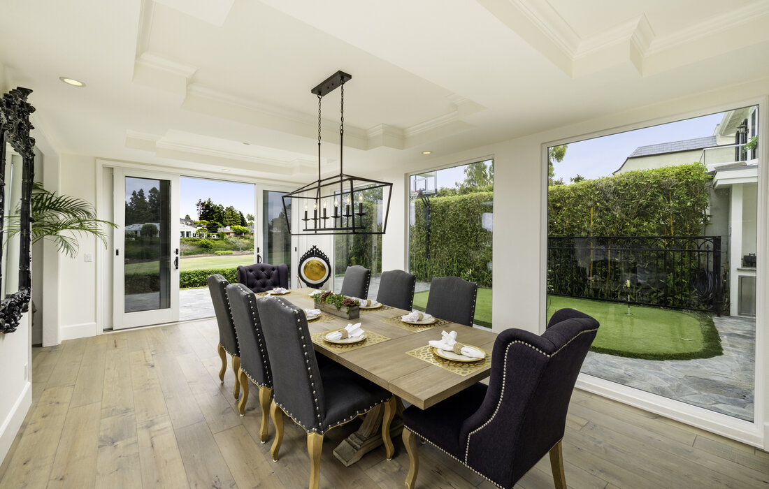 Behind the guarded-gates of Big Canyon, this desirable home is settled on an oversized lot, with some of the best golf course views Big Canyon has to offer. When entering the recently remodeled home with beautiful sand dollar maple floors, you are invited by high ceilings and a direct view of the golf course. On the main level you will find a family room with stack stone accented fireplace, powder room and slider to the yard. The light and bright kitchen features Quartz countertops, a Sub-Zero refrigerator, walk-in pantry, and opens up to the formal dining room and living room with Bose surround system. Encapsulating all that is modern yet traditional, dual window panes showcase the 18th fairway and reveal an abundance of natural light. The generous downstairs master suite features sliding doors to the patio, a fireplace, golf course views and walk-in closet. An oversized laundry room with Quartz countertops, center island and farmhouse sink, a mudroom and an attached 3-car garage complete the lower level. Upstairs offers a large bonus room complete with wet bar, soda fountain and Sub-Zero refrigerator, three additional ensuite bedrooms with views, plus an office with built-ins or 5th bedroom. A private deck brings more incredible views sprawling from the 18th fairway to the green. The yard appeals to the ultimate outdoor entertainer with a putting green, built-in Viking BBQ, and a pool complete with waterfall, slide and jacuzzi. This is a one-of-a-kind residence you do not want to miss!