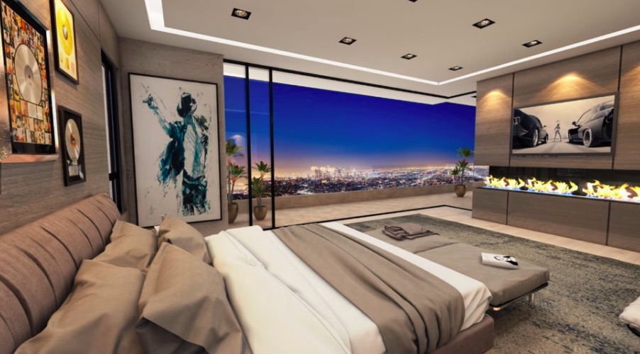 Other celeb amenities include rooftop deck with jacuzzi, an infinity pool with a live backdrop of the City of Angels, a fire pit and on-site spa.
