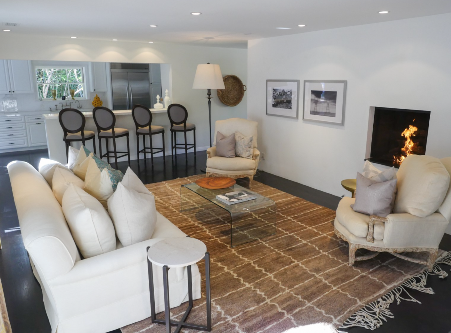If the entertaining carries inside, momentum isn’t lost with two fireplaces, smart home technology (security cameras along the gated property line and hidden ceiling speakers), high-end finishes, custom fixtures, refinished hardwood floors, and marble countertops and stainless steel appliances in the open-concept kitchen. Michael Morabito of Sotheby’s International Realty has the listing.