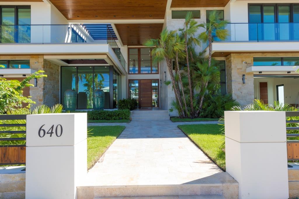 This home is designed and crafted by Zen Mierzwa, founder of AZD Homes, one of South Florida’s oldest and most prestigious builders. The dramatic 8,550 sq. ft. design and the 2,800 sq. ft. of outdoor living space offer contemporary warmth and entertainment friendliness, which were demonstrated at the Hospitality Mansion VIP Event of the 58th Annual VIP Fort Lauderdale International Boat Show. The Zen-inspired two story garden portico, with twin six-foot jade-colored urn fountains, leads the guests to the mahogany and glass front entrance.