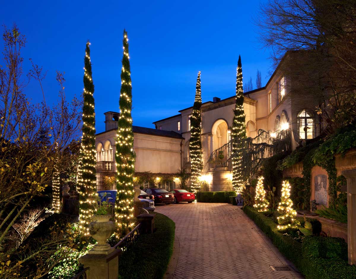 Reminiscent of a grand European estate, this seven-bedroom, seven-and-a-half bathroom residence is situated on 2.84 lush acres of sprawling, fecund grounds.