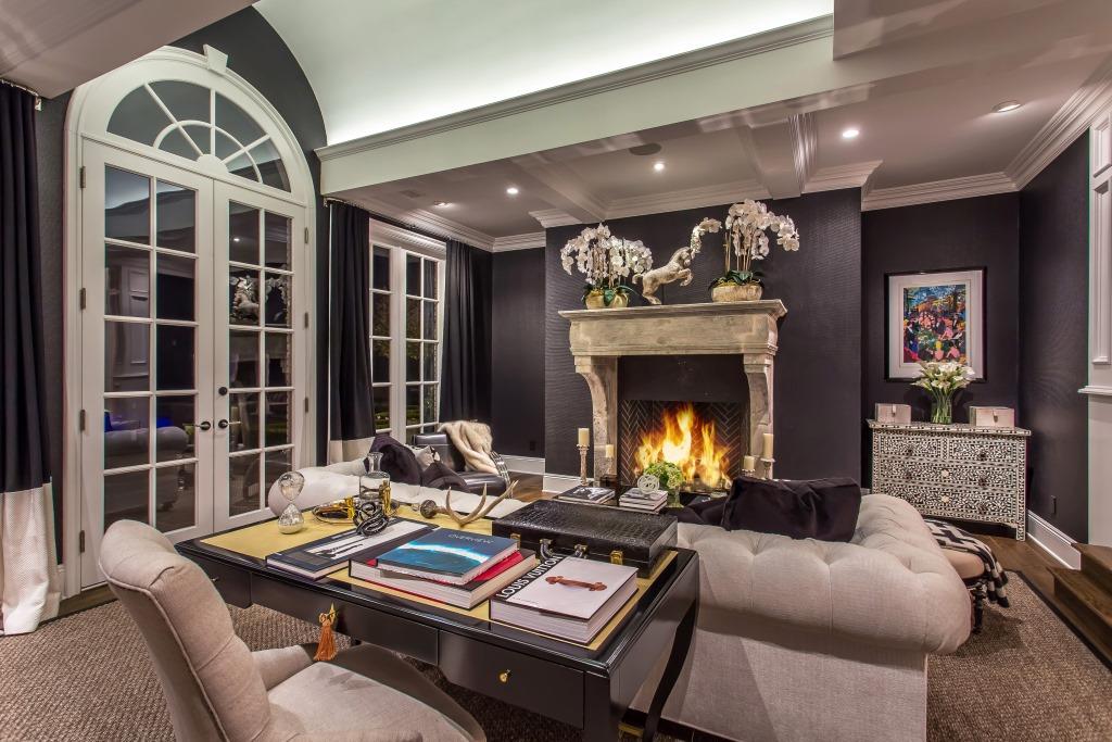 Adorned with lavish finishes, this home boasts an impressively scaled floor-plan offering 6 beautifully detailed bedrooms. The upscale living space includes a grand double staircase foyer with honed marble and wood accents, which opens into a breathtaking formal living room sheathed in a leather wall covering and anchored by an oversized stone fireplace.