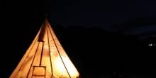 The German resort houses seven cabins. Four are situated on the ground level, while the other three “treehouses” are positioned high above ground. Each cabin can accommodate multiple people, with the largest space able to house a family of eight. There is a tipi fire tent that can accommodate four people and the Waldbar, which serves breakfast, lunch, and dinner.