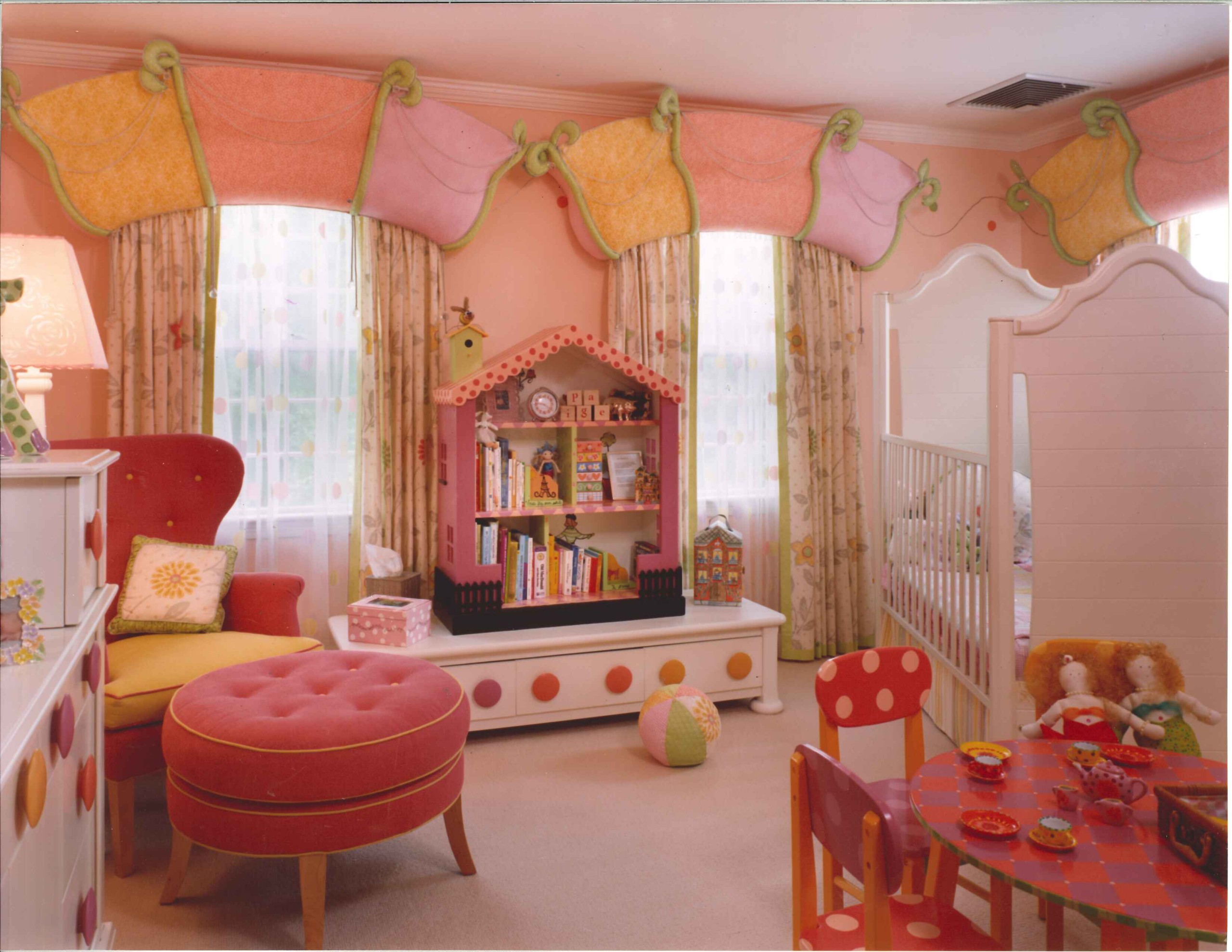 Elevated children’s rooms are created by using plush rugs, textured or printed wallcoverings, interesting artwork, luxurious window treatments, and quality furniture pieces. Adding a pop of color, a touch of metals, plants and woven baskets or accessories give it a refined finishing touch.